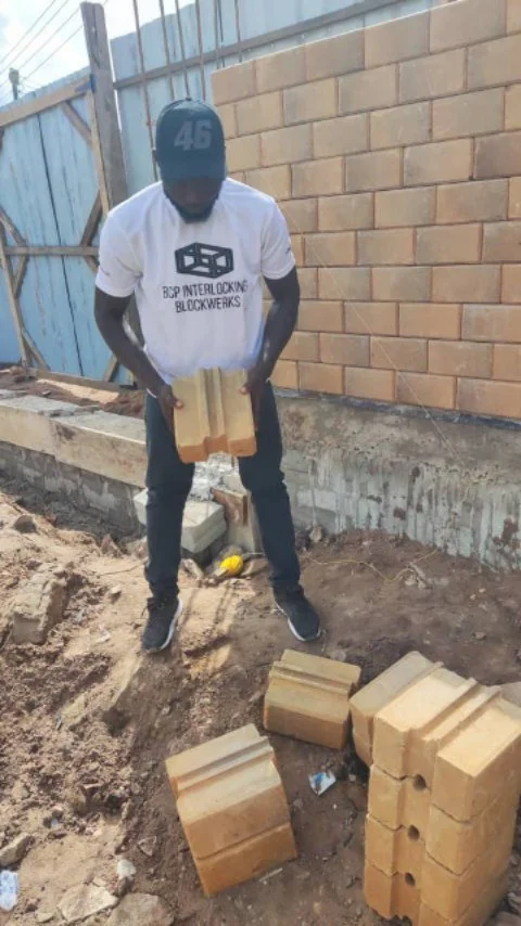 And as far as how we produce our high performance blocks... we use new, high-end, industrial grade machinery that produce our BCP Interlocking Blocks using a new method called "hydraulic forming". The complex machinery helps to compress our innovative "TOP SECRET" admixture into the extremely dense, bulletproof 9-inch BCP blocks you see. We invested a lot of time and effort to come up with our own moulds and mixes specifically for the Ghanaian climate that would be both extremely strong yet as smooth as perfectly sanded wood.. We are proud to say we have achieved this feat with BCP Interlocking Blocks.